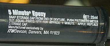 あーあ。まさしく、Devcon社の5分硬化型のエポキシ接着剤「そのもの」。ようするに、OEM版だったわけですね。容器だけ流用した新製品だろうとわくわくしていたのでちょっと残念。