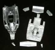 クリスマスもすぎて、かたづけた居間をもとどおりにして、ちょびちょびと再開。小物にとりかかったりしている。で、まずはボディの上につくモノ、ということでチェックしていくと、ウィンドシールドがあわない。ま、毎度のことなんだけれど。この件についての今回の秘密兵器は、バキューム。予備パーツのシールドをポリパテでかたどりしてから、ハンズで3000円弱で買ったツールに両面テープで張りつけ、ガスコンロで温めた青の塩ビを掃除機でバキューム。