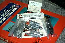 ジルがF1で二年目に乗ったマシン。T3までのつなぎだったため、ブラジルとアルゼンチンの二戦しか走っていない。その結果、資料がほとんどない… ポニーキャニオンのビデオでもこの二戦はちゃっかりと省略されている。BOSCOのビデオでもさがさなければならないかも。手持ちの本をひっくりかえしたのだけれど、78年のT2の写真はぜんぜんない。うーむ。ミシュランタイアのT2ってこれだけなんだけれど…さて、キットはこんなです。いつも、FDSみたいな、とかいっているけれど、これは正真正銘のFDS(笑)。