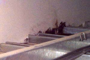 左隣の部屋と隣接した壁にできたしみである。もしかすると、隣の部屋にも同様の影響がでている可能性があろう。
