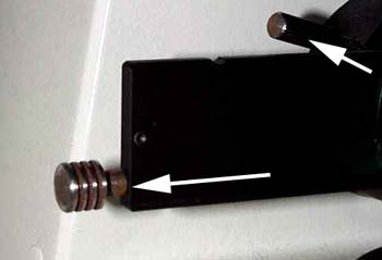 NDフィルタのスライダーつまみや落射用芯出しのつまみも錆びた(矢印) こういう部分がさびるとはまったく考えていなかったので、これを発見したときもショックであった。 |