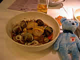 待っててくれた先生の所へ戻ったら、なんと先生まで油をかぶってた!!要するにコースからボタボタと垂れているから見学してる人もとばっちり。。。。まぁさんはポンチョで結構カバーされてたから目立った汚れはないと思ってたけどポンチョにすっごい一杯しぶきが飛んでて、、、げげげのげーーでございました。でも、コースターその物は結構面白くてまた乗りたいよーと思うくらいだったんだけど。で、色々報告してたらやっぱりファイヤーの方がコースもきついんだって!先にアイスに乗れば良かったかなぁ。。。あ、でもそうするといきなり油まみれになってたわけだから、ファイヤーに乗るのやめてたかしら??(大爆笑)ノドが痛くて大変なのに叫ばずに居られないしゃべらずに居られない、そんな半日が過ぎて行ってもう、ノドが痛くて痛くて、泣けて来た。さらに、朝から元気だったので(気合いが入ってたのか?)連続乗りとかしてあっちこっちをうろうろしたので思いきりバッテリー切れになっちゃって一気にへたれちゃったんですよー。で、「せ、先生。私、お腹が空きました。つ、次はどこですか?」と訴えてしまいました(笑)