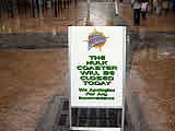 それから最後の仕上げに気力を振り絞って(そうなのか?おいっ!)ツイスターに向かいました。これってアトラクションも映画もどっちかと言うとあんまり評価が高くない(っつーか、駄作か?おいっ!)んだけど、実は私はこの映画は結構好きです。ヘレンハントが意地っ張りだけど、現実では絶対お目にかかりたくない竜巻きの恐怖を垣間見る事ができるしステーキとか美味しそうだし(そうなのか?オイオイ)牛が飛んでるの、可愛いし♪出演者も結構好きだから見てみたかったんでーす。ここへ向かう時に外に居たスタッフ数人が声を掛けてくれて「今日はあいにくの雨だけど、明日からは晴れてくるからね〜、楽しんでね」みたいな事を言ってくれて、ちょっと嬉しかったです。ここのプレショーでは、実際にワキタの町に起った竜巻きの凄さとかそんなの話していたんだと思いますが、ヘレンハントとビルパクストンが出ていて嬉しかったです(笑)いざ、メインへと移動してずっと立ちっぱなしだったのがちょっと体力的には辛かったけど、結構面白かったです。屋根が落ちて来たり電柱が倒れたり(?)願わくば、もう少し長くて徐々に盛り上げる効果と椅子があったら良いなぁ〜ってのが感想でしょうか(^▽^;)