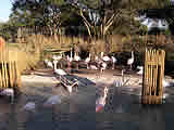 それからまた他のエリアへも移動してさらにそこでもダチョウやキリン(もっとたくさん)も見たりして、さらにロビーへ戻って違う所で寛いでみたりしてもうすっかり虜です♪プールの方へももちろん移動してみました。こっちの鳥が一杯いるエリアまでキリンさんがご飯を食べに出張してきてくれてました(爆)もう、手を伸ばしたら届くんじゃ?と思える程近くに3頭も集まって来てわしわし草を食べているのです♪見ていておかしかったのが、鹿達(ほんとは違います。ええ、すみません)もキリンのおこぼれに預かろうと集まってきて上から落ちてくるのをもごもご食べているのです。で、そんな鹿の中で1頭思いきり背中に草が積もっているの!!おかしいよぉー(笑)で、ここでずーーーっと見ていたらまぁさんが奥の方へ移動しちゃってました。暫くしてそっちへ移動したらそこからの方がさらに良く見えたんですよ!教えろよ、こいつ〜〜!と心の中でおかんむりな私だったりして(大爆笑)そうそう、この辺で見ていた時に小ジカ(だからこれもほんとは違うよっ)の団体も居てすっごい可愛かったです。ラッキーな事にこの小ジカ達が一斉に駆け出してジャンプしつつ奥の方へ移動しているシーンも見られたので感激でした。えさを食べ尽くしたキリンさんもパカッパカッと駆けて戻って行ったのも目撃したしー、もう本当に素晴らしかったです。心配していた先生も「こんなにたくさんの動物今迄一度も見た事ないわ。もう、すごすぎっ。アニマルキングダムよりも凄いじゃん!」とお喜びのご様子でしたのよ、ほほほ♪戻る頃にはプールに入ってる人達を羨ましく感じるくらい気温が戻って来ていてそれも嬉しかったです。