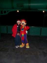 そこを抜けてからFantasyland Character Festivalへ行ったら入口にデールがポツンと立っていたので思わず写真を撮ろうとしたら「列はそっちですよ(苦笑)」とキャストさんに言われてしまいました(自爆)恥ずかしい〜〜!!←私ってしょっちゅうこんな事やらかしてます(笑)で、列に並び直しました。キャストさんは「ここはデールの列です!奥にはマックス、プルート、チップがいます。そっちへ行きたい人はここをスキップして中へ入って下さい!」と盛んに言っていたけれど(汗)無事にデールに会えた後ポケットに入れてたどんぐり(MGMで拾った)を思い出して「これ、デール達にあげるんだった!!」と悔しかった。。。。大失敗だ〜〜!中へ入って次の列に並んだけど15分くらいキャラが戻って来なくてすごい寒いしちょっとつまんなかったよ(笑) 無事にマックス達が戻ってきてグリーティング再開されたのでまた元気になったけど(爆)マックスにはグーフィーのぬいバッジを見せて大喜びされて、チップにはさっきのどんぐりをあげたら飛び上がってハグの嵐(笑)すんごい喜び様でまぁさんにもキッスの嵐って感じでたまりませ〜ん(笑)でもってプルートは暇そうだったのも手伝ってか「僕の背中に乗って〜〜(トナカイだから?そりのつもり??)」なんて感じで一杯遊んでもらって楽しかったでっす〜♪はぅ〜、幸せ(#^^#) あ、そうそう、ここのC&Dはサンタ帽子と紅白のマフラーしてました♪