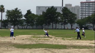 | ■【公式戦】県知事杯名古屋市予選《9/4(日)》船見グランド 10月半田市で開催される、県知事杯の出場権をかけた名古屋市予選が開催されました。 2枠のところ、3チームのエントリーだったため、リーグ戦を行い上位2チームが県知事杯に出られることに。 今年最後の県大会に参加できないなんてことは絶対に嫌だ!と、みんな気合いが入りました。 ◆1試合目 vs LIEN この試合に参加しているチームは、どこも同じような力。ミスしたほうが負ける、緊迫した試合に。リアンは若いチームで元気いっぱい打撃力のあるチームで、守備をするときはもうドキドキ。リーグ戦なので、とにかく勝ったら大手!全力で戦うのみ! ![]() 先発恵子さん セカンドはもっさん 本人(真代ちゃん)びっくりの3塁打、激走!? 《試合結果》