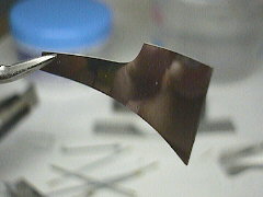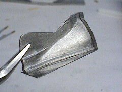 ディフレクターの加工ディフレクターもエッチングの板でできています。うすめ液の空きビンを利用して板にアールを付けていきます。 アールのガイドが何もないので塗装図を参考にしています。この辺はきちんとガイドがほしいところです。