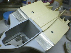 ラジエター固定ラジエターのパーツの一部がボディとなっているので接着してしまいました。段差ができるのでパテで埋めなくてはいけません。