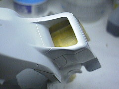 メッシュは保護するラジエターメッシュは金属地を生かしたいのでマスキングしておきます。エアインテイクの中ですとあとから銀色で塗るのはリスクになるからです。 テープには後から剥がしやすいように耳をつけてあります。 |