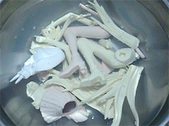 派手なバリを削り、パーツを離形剤落とし剤で洗います。その後、台所洗剤で一晩浸け置き洗いをします。