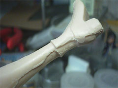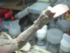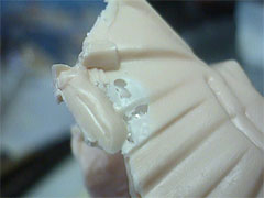 うっかりバリを取ってしまうと元のパーツの形がわからなくなってしまうので、最中の皮を破らないように注意しながら、中の空洞にポリパテを詰め込んでいきます。