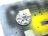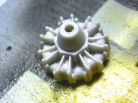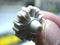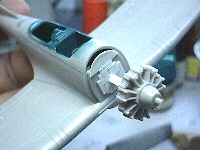 エンジン部分と機体の内壁を接着する部分を切り取って、シリンダーのミゾをデザインナイフで彫っていきます。