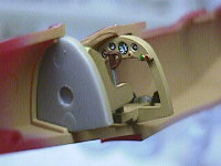 コクピット内の塗装をしました。木製なので指定色はサンディブラウンです。プラの成形色が赤なので、はじめにキャラクターホワイトを下塗りしています。