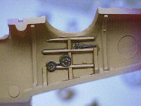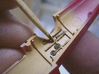 フロートの方には0.3ミリの穴を開けています。こちらには真鍮線を差し込むだけになります。主翼の方できっちりと固定し、フロート側には遊びを持たせるという考え方です。