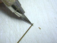 真鍮線は0.2ミリを使います。まずは、真鍮線が通るパイプをカットします。パイプの内径は0.2ミリ、外径は0.6ミリです。