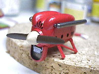 今回の作品では一番のポイントとなるエンジンはこうなりました。ラジエターはもっと厚みがあった方がよかったですね。スリットなどはエナメル塗料でスミ入れしています。