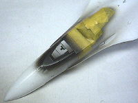 コクピットを組み込んで機体を接着しました。正面のHUDは木工用ボンドで接着しています。