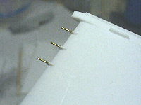 パーツに放電ロッドが付いていたのですが太すぎるので真鍮線に換えました。翼端でカットして基部だけ残し、そこに0.3mmの穴を開けて真鍮線を刺しています。
