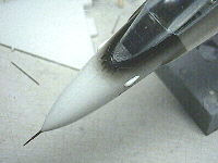 機首のアンテナもディテールアップしています。シルクピンという細い虫ピンに真鍮パイプを通したもので再現しています。