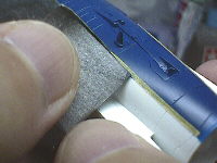 テープを貼ったままペーパーで塗料を削っていきます。1000番のペーパーで力をかけずに撫でていきます。