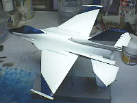 機体上面も形になってきました。翼端はF2の1号機の赤い部分をブルーに置き換えています。