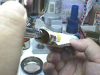 エンジン内部をエアブラシしてます。この部分のパーツ割りは塗りにくい方に変わってしまいました。