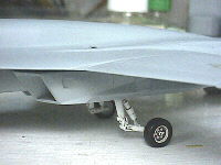 脚納庫のドアも接着して機体下面は完成です。ドアの赤い縁取りはエナメル塗料を使いました。