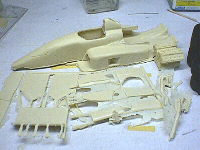 LC88は後部カウリングがありません。エンジンが丸見えになっています。カーモデルとしては見せ場になるところですが、このキットではなんか足を引っ張りそうでかなりイヤです(笑)。