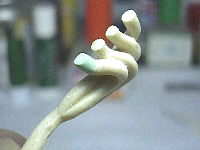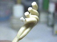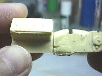 補修部分を削って成形したところです。ポリパテだけだと砕けてしまうことがあるので芯を入れた方が安全です。
