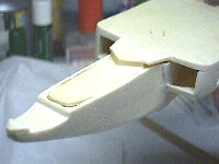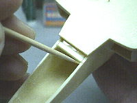 底はフラットなはずなので、プラ板でフタをすることにしました。シートを挟むとノーズの幅が広がるため、プラ棒でつっかえ棒をしておきます。