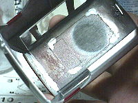 磨いたあとは、コンパウンドを洗い流します。コンパウンドは濡れると見えにくくなるので、水に流す前に筆などである程度払い落としておきます。