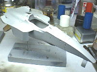 ボディ全体にサフを吹きました。まだ表面がザラザラしています。1000番で全体にペーパーをかけて、もう一度サフを吹きます。