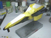 ということで、マスキングをしてノーズの腹の部分にリアルブラックをエアブラシしています。