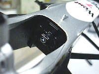 黒いのでわかりにくいのですが、コクピットをボディのパーツに組み込みました。ステアリングのシルバーアロー・マークがアクセントです。