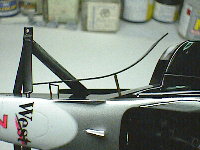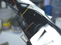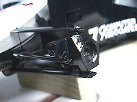 いよいよディフレクターを接着します。サスペンションアームが貫通しているので、少々作業がしづらいのが難点です。