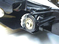 ブレーキディスクをアップライトに接着します。ホイールは真ん中の穴にはめ込むようになっています。ポリキャップなどは内蔵されていません。