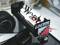 ここは瞬間接着剤を使いました。また、サイドミラーのミラー面にはアルミシールを貼っています。