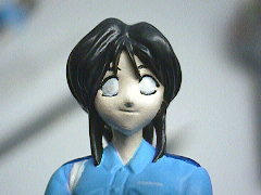 シャツの色はかなり濃いめで、スカイブルーにホワイトを混ぜた色で塗っています。後は袖にマークを描き込めば制服は塗り終わりです。