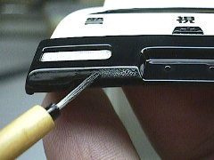 黒い部分に白い点は目立つので、エナメルの塗料を塗って隠蔽することにしました。スミ入れの要領で、気泡に塗料を流し込みうまい具合にコンパウンドの粉を隠してしまおうという魂胆です。