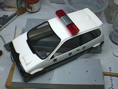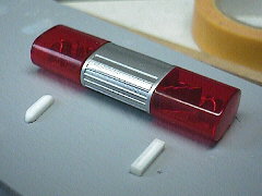 引越の際にうっかりパトライトの脚をなくしてしまいました(^^;。というわけでプラ材で自作しなくてはなりませんでした。プラ板で箱を作ってペーパーで削りだしています。