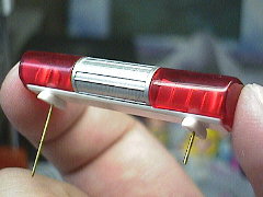パトライトは屋根に直付けとなるので真鍮線で差し込むようにしました。これはきれいに磨いた屋根部分に接着剤を付けるのがもったいないから、なのです。パーツも小さいですし、接着剤を使うよりこちらの方法の方がきれいに仕上がるのは間違いありません。