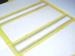駐車場のつもりなので、白線を引きます。ベース全体をこのようにマスキングしてエアブラシで線の部分を塗っていきます。