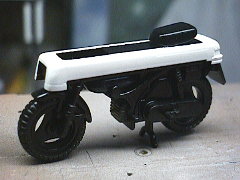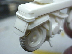 リアタイヤのカバーとナンバープレートをプラ板で追加しました。また、排気筒を真鍮線で追加しています。