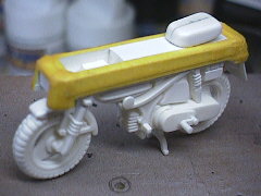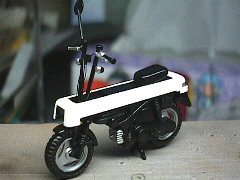 エンジン部分、車輪、ブレーキレバーなどをシルバーで筆塗りすると大分それらしくなってきました。