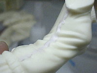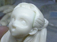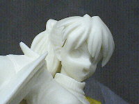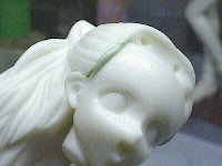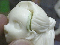 そして、顔の方にポリパテを盛って髪のパーツと合わせます。この状態で固まるまで置いておきます。