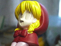 目の塗装に入ります。例によって、私は睫毛から描いていきます。目のモールドに沿ってこげ茶色を塗りました。
