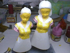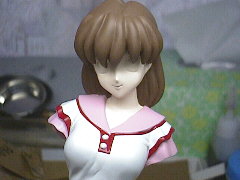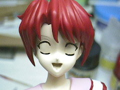 マスキングを繰り返しながら、アンダーシャツのピンク、ユニホームの赤いライン、ユニホームのピンク、髪の毛の赤の順に次々とエアブラシで塗装していきました。