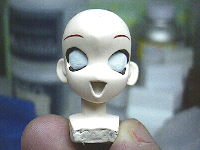 顔を描いていきます。まず、睫毛をマホガニーで塗り、そのあとに白目を塗っていきます。白目はホワイトに微量のインディブルーを混ぜた色で、睫毛を細く塗り残すように重ね塗りします。
