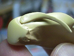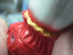 干渉して当たっていた部分の塗膜が割れてはがれてしまいました。まあ、これは仕方のないことです。最後の組み立ての時に接着して筆塗りで補修します。