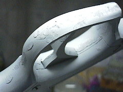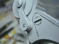銃身の軸を支持している金具の形が違うということなので修正します。出っ張った部分を削るだけで済むのでそんなに大変な作業ではありません。